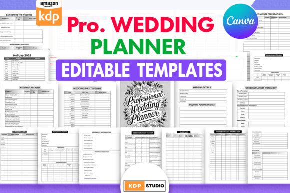 Planning a wedding that’s every bit as polished as the Pinterest boards you’ve been pinning for years? This 34-page luxury planner is designed to match that energy. Its sophisticated layout covers everything from engagement party details and wedding venue comparisons to expense snapshots broken out by ceremony and reception, a preparation sketch section for visual thinkers, and an “After the Wedding Notes” page that makes this a true keepsake. Fully editable in Canva, it also comes with PDF, JPG, and PNG files — making it equally perfect for personal use or publishing on Amazon KDP.