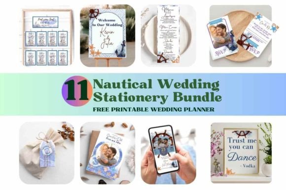 Your wedding venue tells a story — make sure every corner says something beautiful. This nautical beach-themed bundle packs 37 witty and heartfelt wedding signages alongside a complete stationery suite. Signs like “Trust Me You Can Dance – Vodka,” “Eat. Drink. And Be Married,” and “Distance Makes the Heart Grow Fonder” add personality and charm to every table, hallway, and dance floor. And the cherry on top? A FREE 270-page wedding planner is included as a bonus — covering everything from pre-wedding checklists to on-the-day timelines. All editable in Canva, with a beginner’s guide included.