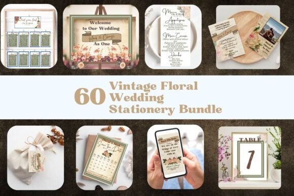 Some love stories call for a softer touch — and this vintage floral bundle delivers pure romantic elegance. Every piece of your wedding stationery, from the invitation to the thank you tag, carries the same delicate floral aesthetic, giving your event that cohesive, magazine-worthy look. What sets this bundle apart is the inclusion of a save-the-date calendar card alongside the standard save-the-date — a thoughtful extra guests will love. Large-format welcome signs are covered too, with an SVG file included for professional printing. A Canva e-book guides beginners through every step.