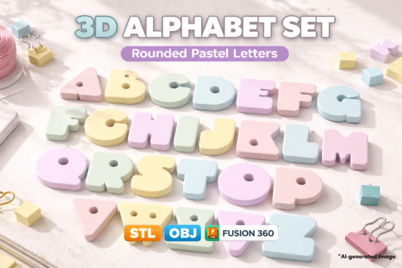 Every maker, every small business owner, and every creative parent needs this set in their library. A complete 26-letter uppercase alphabet in a smooth, modern rounded style â with STL, OBJ, and editable Fusion 360 files all included. Create personalized name signs for kids’ rooms, branded lettering for your market stall, custom door decor, or DIY wall art in any size you want. The applications are genuinely limitless.